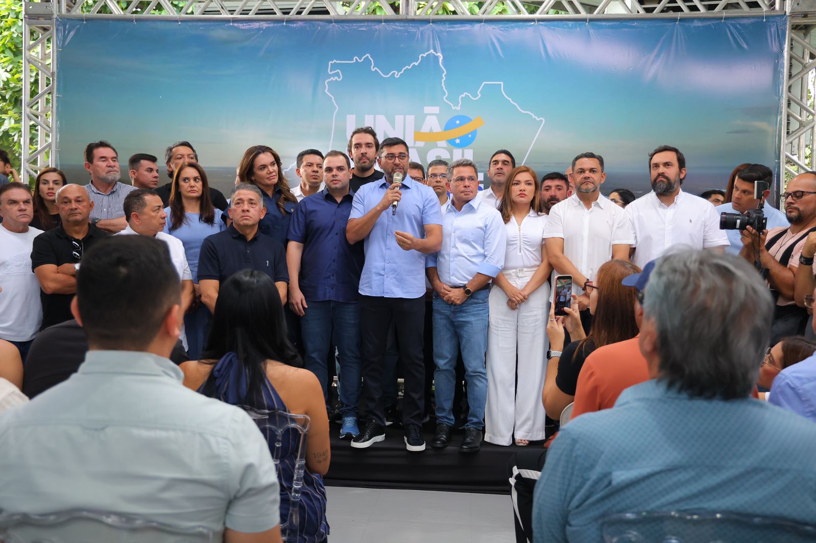 O anúncio foi feito ao lado de aliados políticos e deputados, entre eles o presidente da Assembleia Legislativa do Amazonas (Aleam), Roberto Cidade; os deputados estaduais Rozenha, Joana Darc, Alessandra Campelo, Delegado Péricles, Thiago Abrahim e Débora Menezes. Também esteve presente o presidente da Associação Amazonense dos Municípios, Anderson Souza.